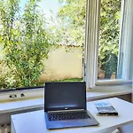 Il luogo offre viste sul giardino. Il bagno comprende anche una vasca da bagno, un bagno alla francese e una doccia.